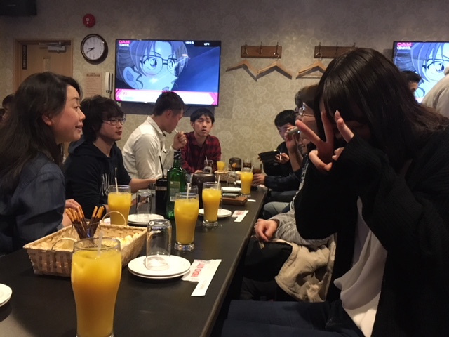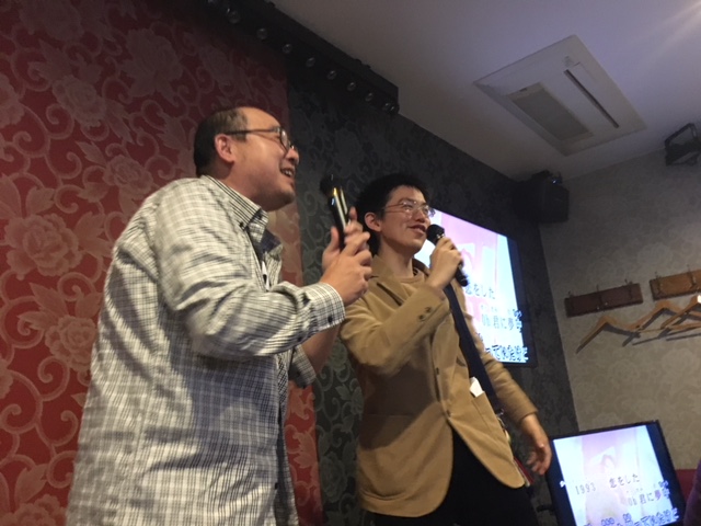 1次会ではおいしい料理を食べ、2次会のカラオケでは