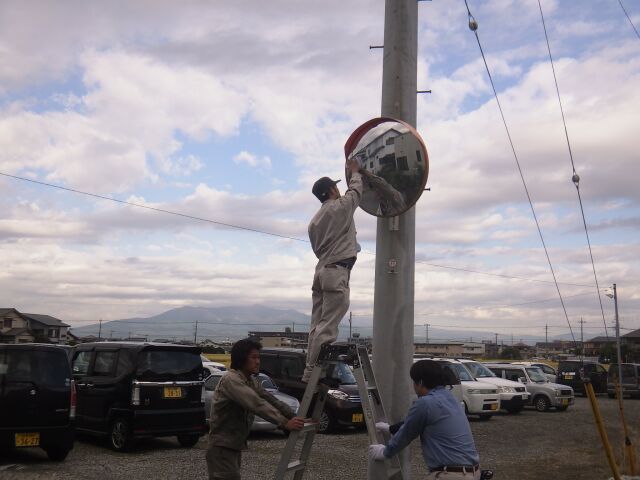 会社周辺のカーブミラーの清掃(9箇所)を行いました。